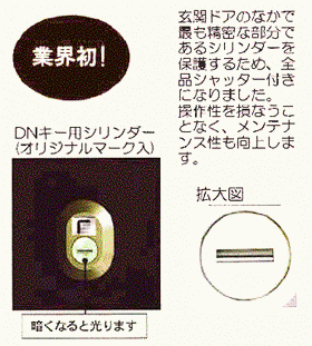 ほのかに発光する『蓄光樹脂』を採用しているため、夜でもカギ穴が見つけやすい。 |