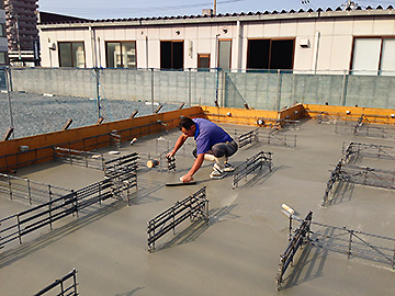 建築物の重量を支え安定させる為に、鉄筋とコンクリートでしっかりと固め『ベタ基礎』を形成・・・まさに建物の要なのだっ!