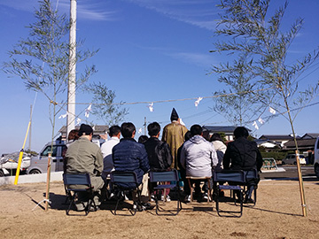 『顔合わせ式』終了後は、引き続き『地鎮祭』を開催!やはり、神主さんの祝詩奏上が始まると、厳かは空気が漂います!