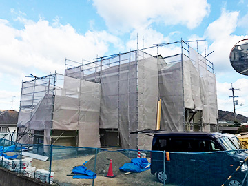 7月6日(水)・・・契約前のスケジュールよりも少し早く、基礎工事が着手となり、約1ヶ月後の8月7日(日)には、無事に上棟吊り込み工事まで到達!現在は・・・11月下旬の工事完成に向けて、順調に工事が進行中となっています!